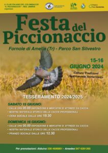 Il prossimo 15 e 16 giugno presso il Parco San Silvestro, località Fornole di Amelia in provincia di Terni, il Club del Colombaccio “Il Piccionaccio” organizza la “Festa del Piccionaccio”, manifestazione dedicata alla cultura, storia e tradizione dell’ars venandi.