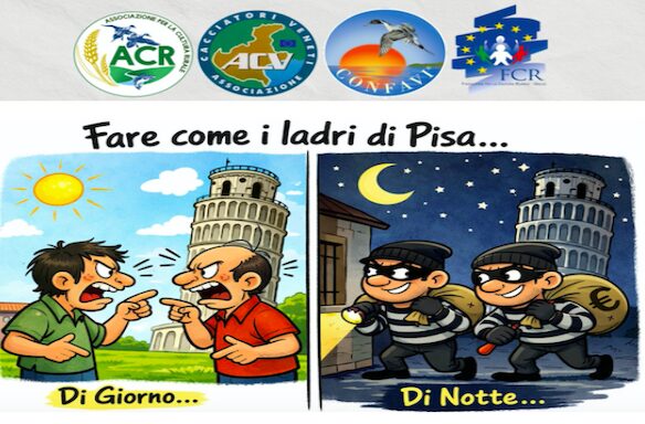 “Come qualcuno ricorderà, i ladri di Pisa erano conosciuti per far finta di litigare di giorno per poi andare insieme a svaligiare le abitazioni di notte. Ci viene spontaneo chiederci: ma se qualche dirigente venatorio non condivide la linea adottata da qualche suo compare all’interno della stessa combriccola, perché non dimostra coraggio e coerenza e non abbandona la Cabina di regia per contribuire a creare un’aggregazione alternativa che si occupi della difesa dei diritti di tutti i cacciatori anziché limitarsi a difendere i propri privilegi? Sarà mica un tentativo di crearsi un po’ di visibilità, stando bene attenti di non uscire da quell’aggregazione inconcludente che parrebbe non aver creato sin dalla sua creazione alcuna utilità per il mondo venatorio italiano?“.