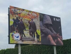 Se credono che con quest’immagine dei cartelloni possano indurre alcuni tossicodipendenti a non essere più tali e scegliere la “bellezza” della caccia… crediamo che non abbiano capito molto il “pianeta tossicodipendenze” e (visto che nel loro logo c’è anche la parola “ambiente”), il Pianeta in generale. Noi non abbiamo la pretesa di averlo capito e non diciamo loro quale sia. Ma partiamo da un altro presupposto rispetto al loro: su questo Pianeta ci dobbiamo vivere tutti, perché tutti contribuiamo al suo equilibrio. Mentre loro fanno sport uccidendo animali in ambienti che hanno ripopolato artificialmente per consentirsi di ammazzarli…. ché alla moria di animali ci pensano ben altri fattori ambientali ed umani che non le loro doppiette. Poveracci!”.
