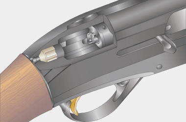 All’atto dello sparo, gli elementi elastici inseriti nel tappo come la molla d’acciaio e l’anello in tecnopolimero, concorrono congiuntamente all’assorbimento delle vibrazioni della canna, con il risultato di un minor affaticamento del tiratore, maggiore stabilità dell’arma nei tiri in rapida successione ed ancor più elevata affidabilità e durata del fucile.