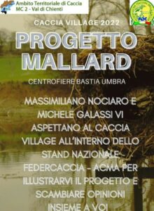 A Caccia Village 2022 dal 13 al 15 maggio prossimi presso lo stand della Federcaccia nazionale, per tutti gli appassionati dell’avifauna acquatica, ci sarà uno spazio dedicato alla presentazione del progetto “Mallard” che vede il coinvolgimento di A.C.M.A. (Associazione Cacciatori Migratori Acquatici – Settoriale FIdC) e dell’Ambito territoriale di caccia Macerata 2 – Val di Chienti.