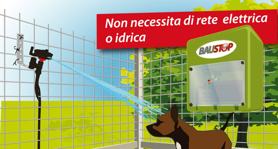Baustop: Ideato dagli esperti di Cinotecnica, Baustop è l’innovativo anti-abbaio a spruzzo d’acqua che risolve una volta per tutte ogni problema legato all’abbaio incontrollato dei cani. Completamente autonomo da rete idrica ed elettrica, è adatto a box, canili, piccoli spazi aperti e terrazzi. Assolutamente indolore, è efficace, rapido ed ecologico.