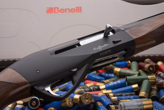 L’estetica è quella conosciuta con la parte centrale del castello che pare uscire dall’armonica corolla posteriore con una fusione di linee rette e curve come di piani lisci o arrotondati: il nero domina la scena con la brillante lucidatura dell’otturatore e del grilletto a far da contrasto. Del sistema inerziale annotiamo soltanto la chiusura a testina rotante con due alette e la molla di recupero posta nel calcio: l’attuale taratura delle molle di contrasto consente l’impiego di cariche tra i 24 e i 56 g di pallini, ampliando quindi ulteriormente l’ambito di utilizzo. Tra i vantaggi di tale funzionamento ricordiamo come si eviti l’imbrattamento presente invece nei presa di gas. In ambito di sicurezza segnaliamo il congegno che riporta automaticamente in chiusura l’otturatore se dovesse arretrare accidentalmente per un urto. Anche la suola elevatrice delle cartucce e la feritoia di accesso sono state ridisegnate con attenzione alle sezioni di passaggio, all’arrotondamento dei profili, alla scorrevolezza per un più facile inserimento delle cartucce nel serbatoio: l’insieme prende il nome di Easy Loading. Parimenti è stata migliorata la funzionalità della levetta inferiore per lo svuotamento del serbatoio.