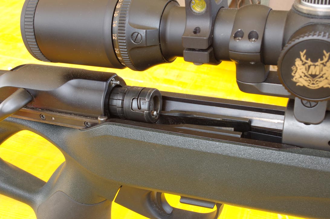 Abbiamo quindi a disposizione questo fucile dotato della calciatura in sintetico verde scuro denominata Success estremamente ergonomica nel tiro mirato e parimenti favorevole in quello su bersaglio in movimento come in una battuta al cinghiale: un poco di allenamento per sistemare rapidamente la mano attraverso la trabeazione ricavata fra calcio e impugnatura, passando dall’arma appoggiata alla spalla e la messa in mira, ed il gioco è fatto. Il motivo di tanta facilità nel puntamento risiede nel profilo superiore del dorso che parte con una leggera curva a salire dall’innesto col fusto proseguendo con linea dritta fino al calciolo: la guancia appoggia così su un piano ben elevato portando l’asse dell’occhio a livello di quello dell’ottica favorendo l’acquisizione immediata della lente, in pratica senza sforzi di accomodamento del bulbo. La pistola presenta una forte arcuatura e un’ampia sezione tonda con modellatura ergonomica su cui la mano si sistema in maniera naturale e senza tensioni: un rilievo aggettante inferiore verso la coccia segnala alla mano di non scendere ulteriormente. Il fusto di foggia prismatica, piuttosto ampio e profilato verso la parte dell’asta sottocanna, è il supporto della parte inferiore della meccanica e della canna: ne diamo una descrizione anche se agli appassionati tutto ciò è ben noto.