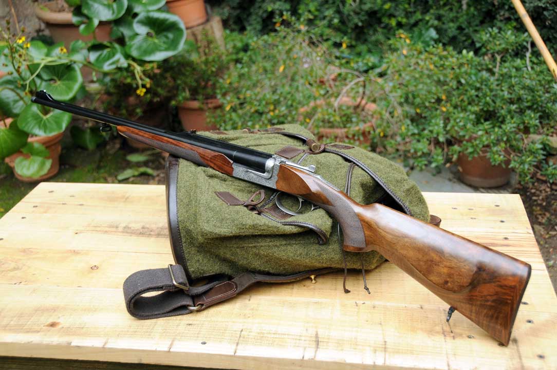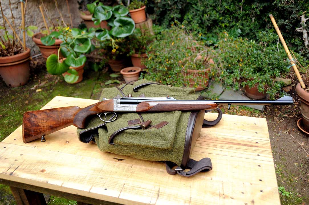 Quest’arma è prodotta nei cinque calibri classici 8x57JRS, 9,3x74R e 30-06, anche se quest’ultimo, pur essendo ottimo, non lo considero indicato per un’arma basculante, volendo è anche disponibile in calibro 30 Blaser e .308 Win. L’express è contenuto in una pratica valigetta in abs con chiusure a combinazione, appena aperta mi colpisce la compattezza dell’arma, la qualità dei legni e delle finiture, sempre considerando che si tratta di un fucile di produzione e di fascia media, all’interno troviamo anche la garanzia, la prova di tiro e il certificato del Banco di Prova di Saint Etienne.