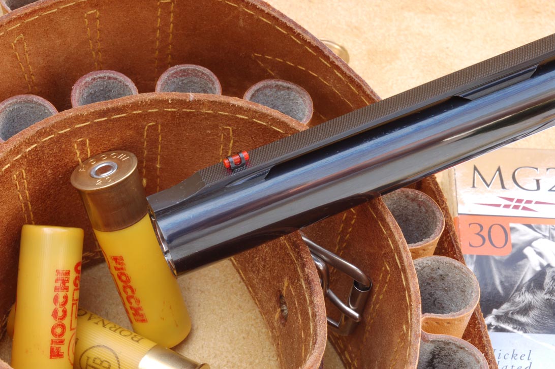 Troviamo che nel nostro esemplare la lunghezza di canna pari a 71 cm calzi bene sull’insieme e, considerate le misure del fucile appropriate al calibro 20, questo doni uno slancio notevole: insomma, un bel colpo d’occhio che ravviva lo spirito. C’è poi ovviamente il risvolto balistico che sul terreno di caccia ha fatto valere le sue prerogative con cartucce 20/70 (non sono state impiegate le 20/76) caricate con polvere progressiva e 32 g di pallini. Le operazioni di fabbrica prevedono la foratura e quindi la rotomartellata su spina per ottenere i diversi diametri interni con i relativi coni di raccordo. Prossima alla volata si trova la filettatura per il fissaggio dello strozzatore intercambiabile: insieme all’apposita chiave ne vengono forniti cinque permettendo quindi una scelta ottimale per la caccia che s’intende intraprendere. L’esterno è a prova di retta d’ombra e la bella brunitura intensa risalta magnificamente: dettagli, d’accordo, ma anche una bella cornice aiuta a mettere in risalto un quadro di valore. Osserviamo alcuni particolari come l’anello inferiore fissato a Castolin tramite la propria base rettangolare, e poi la bindella ombreggiata saldata direttamente alla canna con i ponticelli, senza la sottobindella, e con l’apice smussato: altre due scelte di gusto. Il mirino LPA è un cilindretto in fibra ottica rossa, di sezione contenuta e di gradevole funzionalità risultando ben visibile senza coprire oltre misura il bersaglio.