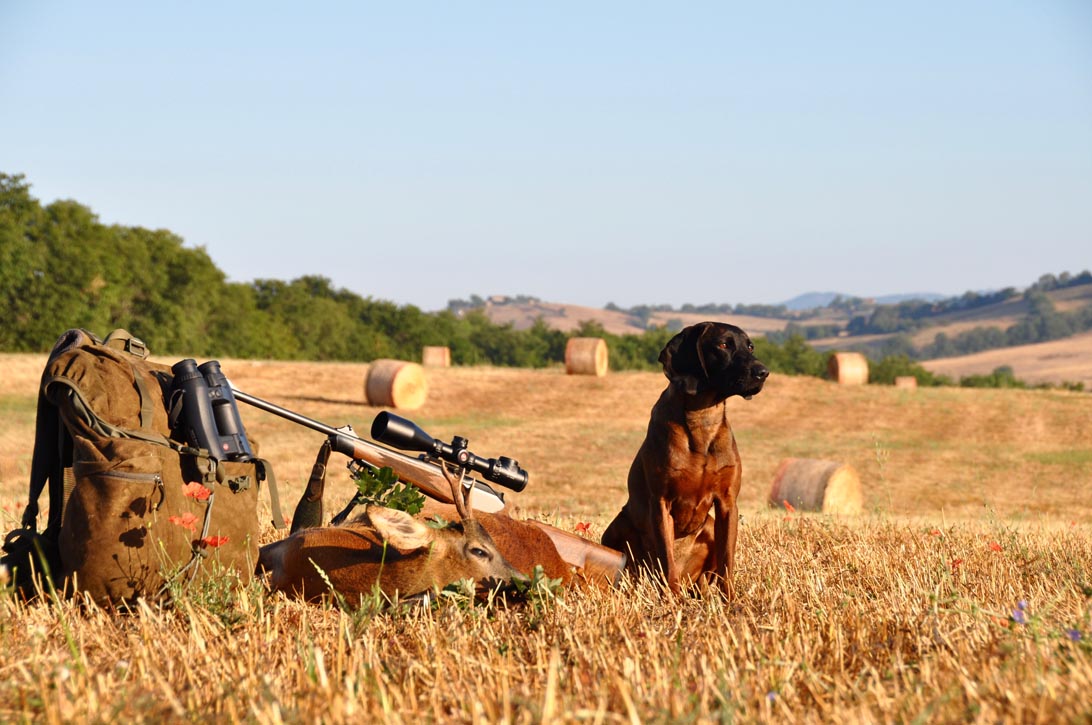 Senza perdere tempo Paolo sistema la carabina, erta sul bipiede e poggiata sullo zaino. Anche i gomiti sono bel saldi, le sue spalle rilassate, il suo respiro regolare. Si gira verso di me, a pochi metri da lui, cercando con lo sguardo il mio “0k”. A 180 metri non saranno necessari aggiustamenti per la carabina tarata a 200. Mi preparo al rumore dello sparo, che sorprende Paolo, me ma non Hermann, seduto ai miei piedi, immobile come un corazziere. Dal binocolo osservo il capriolo che incassa il colpo con un salto sul posto, poi percorre pochi metri restando ingobbito e barcollante. A pochi secondi dallo sparo gli zoccoli del capriolo fendono il cielo nel doloroso commiato dell’ultimo respiro. Poi non lo vediamo più.