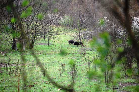Una volta che tutti i partecipanti hanno preso posto il capo caccia effettua una rapida verifica, oggi sempre di più tramite radio ricetrasmittente, ed accertatosi che: le tronche che circondano e dividono il luogo destinato alla battuta sono tutte armate, i postatoli sono al proprio posto, i bracchieri hanno raggiunto i luoghi di sciolta e gli eventuali battitori sono anch’essi pronti, finalmente da inizio alla battuta suonando forte la corna in modo tale che tutti possano sentire che le “danze” si sono aperte. Uso questa espressione, credo, in modo appropriato in quanto per poter ballare serve la musica e questa per un cacciatore di cinghiali viene fornita dai cani che con le loro voci riempiono il bosco. All’inizio di questa stagione un mio caro amico bracchiere mi ha detto con espressione serie e grave: “quest’anno con i cani che abbiamo non dobbiamo pagare la tessere alle associazioni venatorie, ci toccherà pagare la SIAE”.