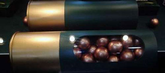 Iniziamo dall’acciaio. Questo materiale è in realtà una lega di ferro detta anche “ferro dolce”. Di colore argenteo , l’acciaio è indeformabile, ma ha un peso specifico inferiore al piombo e per ottenere la resa balistica di quest’ultimo è necessario aumentare il diametro della palla. L’aumento del diametro rallenta la velocità del proiettile e non consente di sparare a lunghe distanze.
