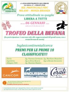 Una tradizione che si ripete con successo e che sarà riproposta anche nel 2026. Il nuovo anno si apre con la gara della Befana delle Lady Federcaccia, che rinnova la bella abitudine nella Zona Addestramento Cani di Limbiate (Monza-Brianza), nella prova cinofila riservata a tutte le conduttrici di cani di sesso femminile.
