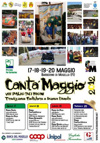 L’edizione 2012 si svilupperà dal Giovedì 17 Maggio fino alla Domenica 20, giorni nei quali tutti i 5 rioni di Barberino saranno addobbati con i drappi ed i festoni dei loro colori, ognuno ospitando vari momenti della festa. Così, dopo le ultime incoraggianti edizioni, che hanno visto una folta partecipazione di pubblico ad assistere ai giochi e alle numerose animazioni organizzate dai diversi rioni, anche l’edizione 2012 si preannuncia come un importante momento del paese che per quattro giorni torna ad essere uno dei centri più vitali dell’intero Mugello.