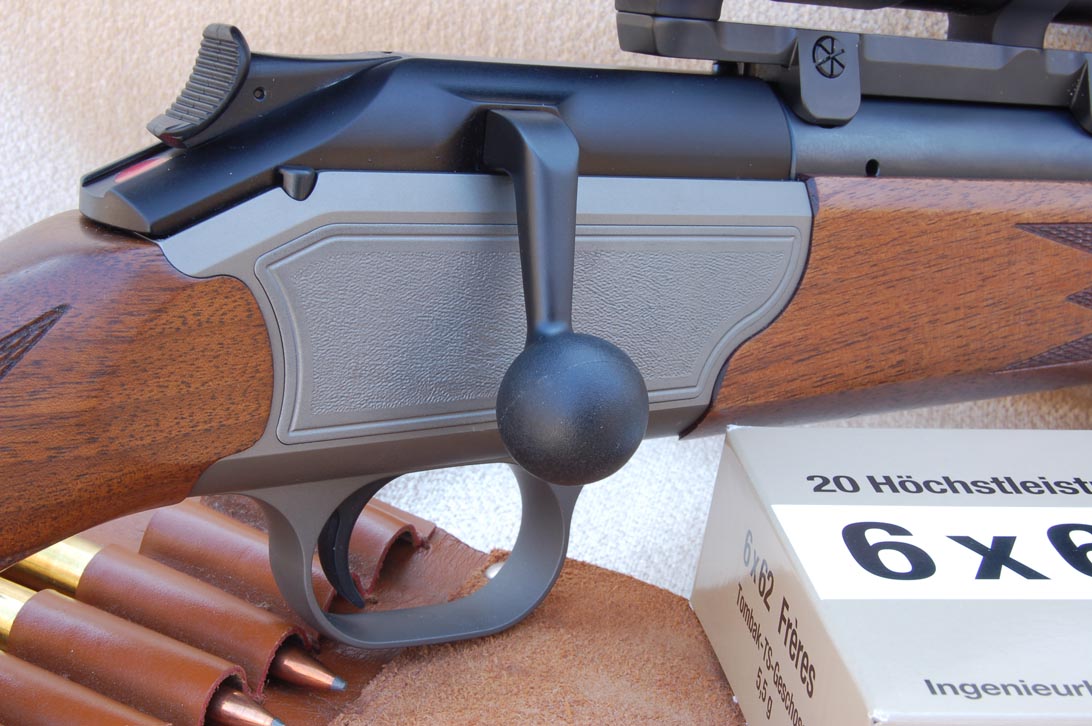 La Blaser ha adottato un sistema di armamento manuale della batteria, scollegato dall’azionamento del manubrio e dalla cameratura della cartuccia: questo particolare ha determinato una scelta che molti costruttori hanno successivamente seguito per le proprie armi considerando quale sia la sicurezza determinata: si cammina con la cartuccia in camera e molla della batteria distesa con percussore bloccato. Una pressione sul tasto a slitta e la batteria è armata così si può sparare con una pressione sul grilletto inferiore agli 800 g, netta, pulita senza la minima sbavatura: oppure si rimanda il tiro ed è sufficiente una ulteriore leggera pressione sul tasto per disarmare la batteria. Per contro azionando il manubrio dopo uno sparo o per cambiare la cartuccia la batteria resta armata: è bene prestare molta attenzione per non rimettersi in marcia in tale condizione.