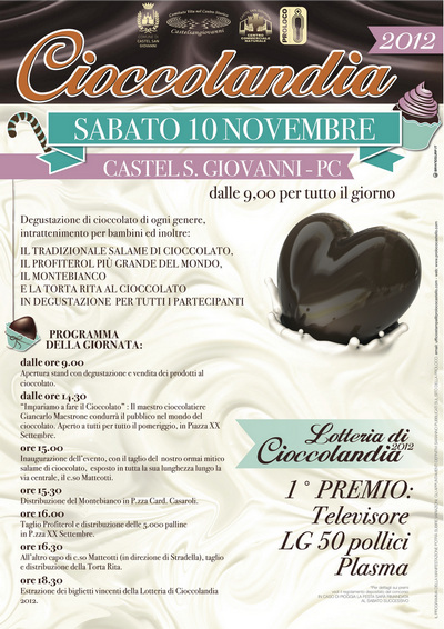 Cioccolandia - Castel San Giovanni (PC)Torna anche anche quest’anno, “Cioccolandia”, il cioccolato in scena a Castel San Giovanni (PC) il 17 novembre 2012.