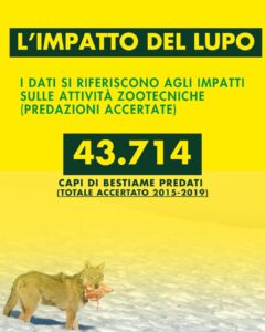 E il lupo? In questo caso, tra il 2015 e il 2019 sono stati oltre 43.700 i capi di bestiame predati, l’82% dei quali ovicaprini. Questo il commento di AB: “Questi dati ci aiutano ad affermare nuovamente che la gestione faunistica non è solo una sfida ambientale, è una necessità economica per la sopravvivenza delle nostre campagne” (fonte: AB-Agrivenatoria Biodiversitalia).