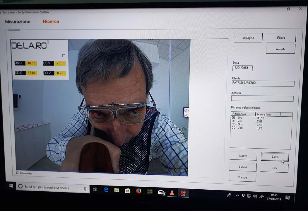 Il passo successivo è stato passare alla montatura, anche qui sono stati necessari diversi passaggi fino ad arrivare all’attuale quarta serie, realizzata in un acciaio particolare molto flessibile, caratterizzata da un nasello regolabile e tenuto in posizione da una vite di fermo sul ponte, disponibili in quattro misure diverse di lunghezza dell’asta, per un peso di soli 14 grammi. La montatura e il nasello così realizzati diventano praticamente invisibili senza disturbare il campo visivo del tiratore. A questo punto è subentrata anche la necessità di realizzare lenti correttive, e qui è venuta fuori la professionalità dell’ottico, Toni si è subito reso conto che il tiratore al momento dello sparo tiene la testa in una posizione particolare e sempre diversa fra una persona e l’altra, pertanto misurare il centro focale nel modo classico, con il righello ottico, non poteva dare risultati ottimali. Da qui è nata l’idea di sviluppare un software apposito.