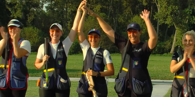 Due medaglie d’oro e due Titoli di Campioni Europei chiudono la Rassegna Continentale di Osijek (CRO) per gli Azzurri di Skeet del Direttore Tecnico Andrea Benelli, impegnati oggi nella gara a squadre. Diana Bacosi (Esercito) di Cetona (SI), Martina Bartolomei (Aeronautica Militare) di Laterina (AR) e Simona Scocchetti (Esercito) di Tarquinia (VT) hanno chiuso le qualificazioni in prima posizione con il punteggio di 219/225 e nel medal match per l’oro e l’argento hanno regolato con un secco e chiarissimo 6 a 0 il team della slovacchia, meritandosi il titolo di Campionesse Europee a Squadre.