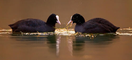 La Folaga è la specie della sua famiglia più facile da osservare. La Folaga nidifica ai bordi di corpi d’acqua di ogni dimensione e tipo, caratterizzati dalla presenza di canne e di alta vegetazione riparia. La Folaga costruisce un nido voluminoso e sopraelevato, spesso galleggiante ed ancorato alla vegetazione acquatica della riva. In inverno si riunisce invece in stormi enormi sugli specchi d’acqua, in particolare lagune, raccolte d’acqua salata e acque marine costiere, dove è facile osservarla mentre si tuffa alla ricerca di cibo; può stare sott’acqua anche mezzo minuto. La Folaga si nutre soprattutto di materia vegetale (in inverno), ma anche di invertebrati e piccoli pesci; si alimenta anche a terra, oppure depreda il cibo agli individui della stessa specie. Nidifica in tutta Europa, fino a metà della Penisola Scandinava, in modo omogeneo nelle porzioni centrali e frammentato nella parte meridionale. I contingenti della parte temperata e calda dell’areale sono sedentarie, mentre le popolazioni più settentrionali sono migratrici; in parte si dirigono verso l’Africa sub-sahariana, ma le maggiori concentrazioni di individui svernanti si rilevano nel bacino del Mediterraneo, interessato da movimenti migratori di 2 milioni di individui di Folaga. In Italia la Folaga è nidificante, migratrice regolare e svernante. Le maggiori concentrazioni nella stagione fredda si osservano a quote inferiori ai 1000 m s.l.m., in particolare sul Trasimeno, nel Delta del Po, e nelle zone lagunari nord-orientali (Baccetti et al., 2002); alti numeri di catture si riscontrano lungo le coste toscana e veneta, mentre i numeri più bassi sono relativi alle zone umide interne. I picchi di flusso di Fologa si hanno tra dicembre e gennaio, con un successivo aumento a febbraio, e un nuovo picco tra ottobre e novembre, quando giungono i contingenti svernanti (Macchio et al., 1999).