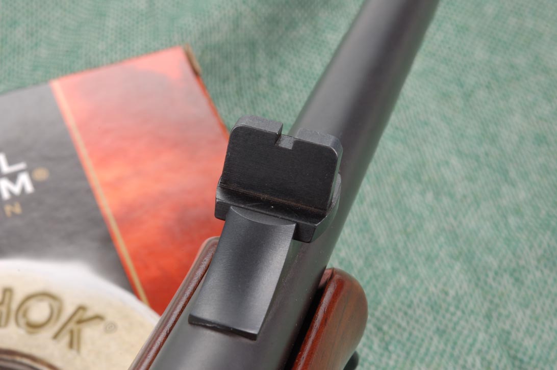 La batteria con armamento manuale è prerogativa anche di questa Haenel: apertura e chiusura della canna servono unicamente per camerare o estrarre la cartuccia mentre un tasto a slitta, scorrevole sul codolo superiore della bascula, mette in tensione la batteria. E’ intuibile la sicurezza che ne deriva per la marcia con la cartuccia in camera, per armare solo nel momento in cui si è pronti a far fuoco, per disporre di uno scatto molto sensibile senza necessità dello stecher e di una sicura convenzionale. Rinunciando allo sparo va tenuto ben presente il disarmo manuale che si attua o con un’ulteriore pressione sul tasto a slitta e la sua retrocessione in posizione di disarmo, oppure agendo sulla chiave di apertura con l’identico risultato: in caso contrario si avrà il fucile pronto allo sparo e con una sensibilità notevole al grilletto. Per terminare poniamo ancora in evidenza le dimensioni compatte dell’arma, il peso ridotto, la facilità di scomporla stivandola nello zaino. La dimensione dell’ancoraggio deve indurre alla scelta di un’ottica con massa e misure contenute, in sintonia con il fucile: di sicuro faciliterà il raggiungimento dei risultati.