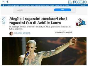 In Italia cosa fanno gli ottenni? Guardano Achille Lauro cantare in tutina aderente mentre la mamma inforna la torta veg? Ovvio che i cinghiali invadano perfino le autostrade… Sant’Uberto, patrono dei cacciatori, proteggi questo ragazzino col fucile, speranza della civiltà”.