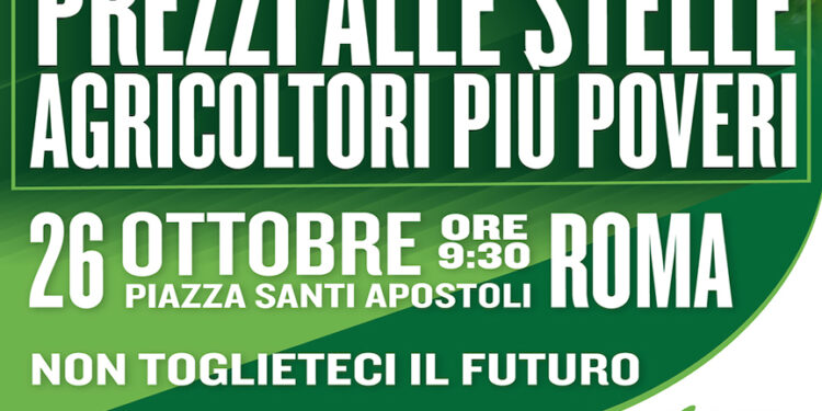 “Prezzi alle stelle, agricoltori più poveri”. Ѐ questo lo slogan della manifestazione nazionale indetta da Cia-Agricoltori Italiani a Roma, giovedì 26 ottobre alle ore 9:30 in Piazza Santi Apostoli. Saranno migliaia gli agricoltori in arrivo da tutta Italia per partecipare con la rappresentanza Cia, a partire dal presidente Cristiano Fini, all’azione di sensibilizzazione nel cuore della capitale.