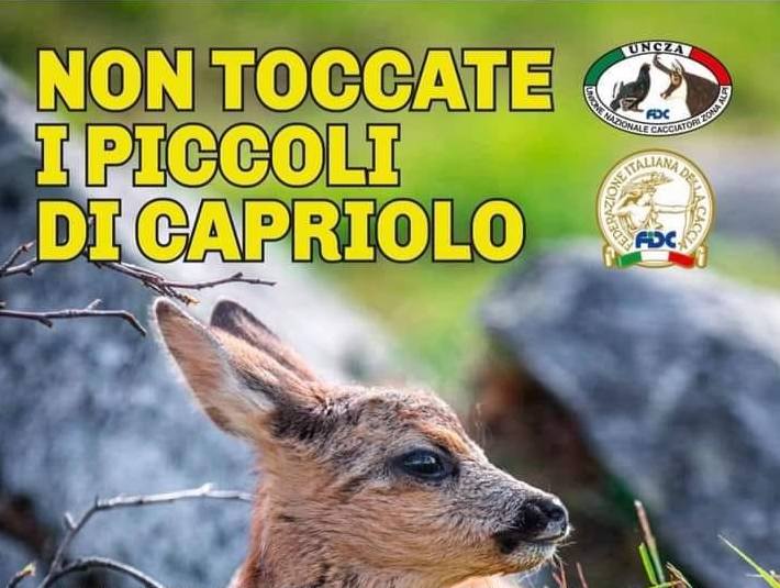 L’Unione nazionale cacciatori “Zona Alpi” (UNCZA) e la Federazione Italiana della Caccia (FIDC), lanciano una campagna per proteggere i piccoli di capriolo. L’invito è a tenere i cani al guinzaglio quando si cammina per boschi e di non avvicinarsi ai selvatici. Scrivono i cacciatori: “Nei mesi di maggio e giugno nascono i piccoli di capriolo. Se passeggiando nei boschi o nei prati ti capiterà di incontrarli