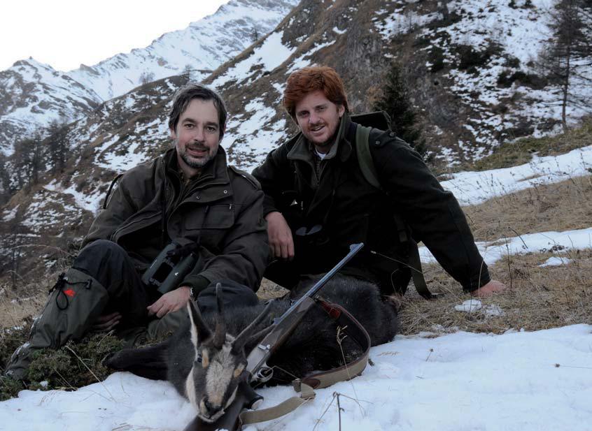 Posizioniamo il mio zaino sopra quello di Leone, così da permettermi il tiro da seduto e, dopo un attimo, appare il camoscio che comincia a risalire il canalone. Una veloce misurazione con il telemetro ci dice che il selvatico si trova a circa 180 metri; appoggio la mia vecchia Blaser R850 in calibro 6×62 Freres, lo inquadro nel reticolo dello Swarovski Z6 2-12×50, aspetto che mi mostri il fianco, e quindi stringo il grilletto: l’animale cade sul colpo, ruzzola per qualche metro e si ferma. Per sicurezza tiro un secondo colpo: il camoscio è ora morto sul posto. Emilio s’incarica del recupero: si tratta di un prato per me impossibile, quasi verticale, ma lui scende come se fosse nella piazza del paese; intanto, Leone ed io arriviamo in un boschetto che sfruttiamo per agevolarci la discesa. Quando raggiungiamo l’anschuss, Emilio ci sta aspettando tranquillo: ha già pulito il capo. Si tratta di un maschio di sette anni, molto bello per gli standard locali, ove le alte quote non consentono lo sviluppo di trofei eccezionali. Facciamo le foto di rito e torniamo alla macchina. Sono molto contento della giornata di caccia conclusasi nel migliore dei modi. L’unico rammarico, forse, è di aver visto solo stambecchi molto lontani senza poter prendere buone fotografie. Arrivati a casa ormai a buio, ci apprestiamo a eseguire le misurazioni biometriche per completare la scheda d’abbattimento: mentre siamo intenti nell’operazione, arriva una volpe molto interessata al nostro camoscio; sarà difficile dissuaderla dal facile boccone. Continua a girarci intorno e, comunque, rimedia da Leone un pezzo di pane. Nel mentre arriva Luigi che ha prelevato anche lui un maschio. La sera vengono a cena il fratello di Luigi con la moglie. Parliamo della giornata appena conclusa: il fratello ha preso due camosci, un maschio e una femmina. Per il giorno successivo decidono che Leone uscirà con il guardiacaccia Marco, mentre io accompagnerò Luigi e Noel nel fondo valle, al confine con il Parco.