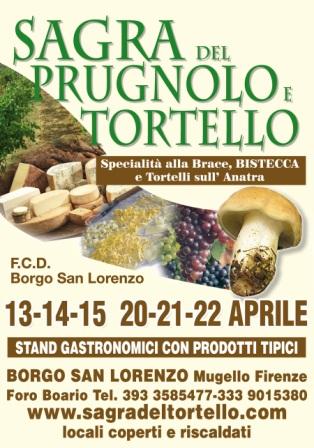 Scopri Borgo San Lorenzo ed il Mugello con la “Sagra del prugnolo e tortello” in programma dal 13-14-15 e dal 20-21-22 aprile 2012, che sarà impreziosita dagli stands dei produttori locali della Coldiretti. La manifestazione si svolgerà venerdì sera, sabato e domenica a pranzo e cena. La capitale dei sapori è Borgo San Lorenzo, nei locali coperti e riscaldati del Foro Boario, in Via Caduti di Montelungo. Impossibile mancare!!