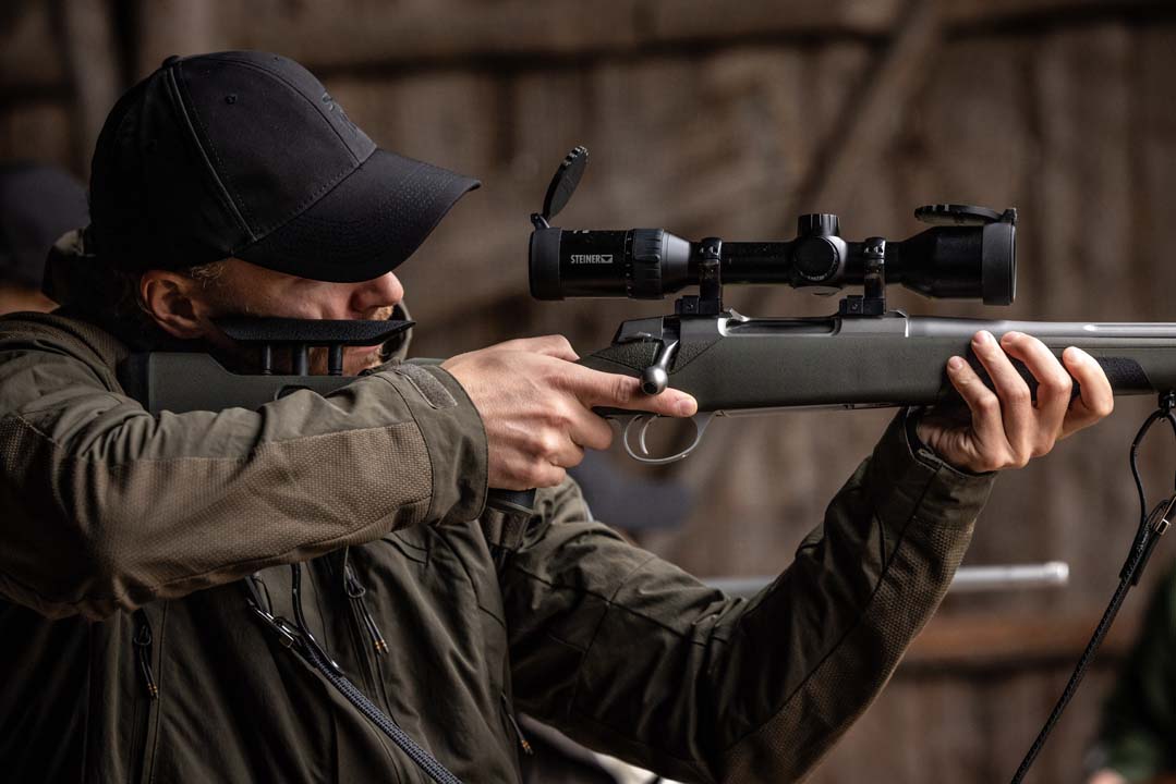 Precisione sul campo – Dotata di ottica Steiner, questa carabina è ideale per il tiro a lunga distanza, anche in condizioni meteorologiche avverse.