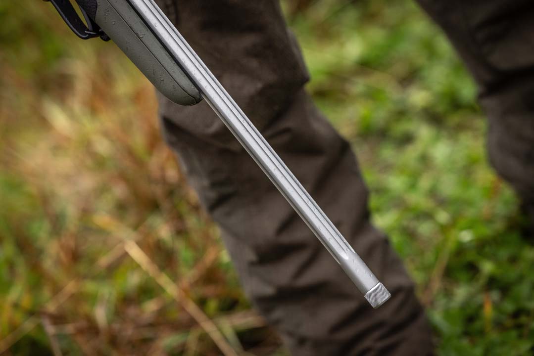 30. Canna in acciaio inossidabile – La finitura satinata riduce i riflessi, mentre la filettatura in volata consente il montaggio di freni di bocca o moderatori di suono.