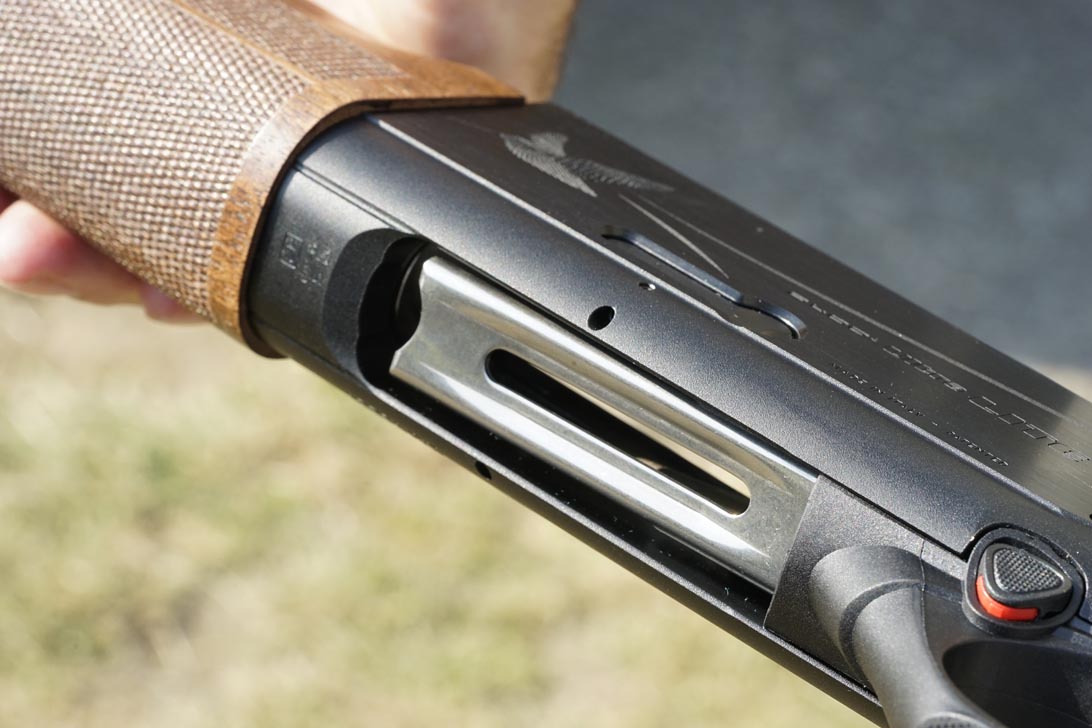Veniamo alla prova sul campo. Prendendo in mano il fucile ci si rende conto immediatamente del gran lavoro realizzato dai progettisti per realizzare un’arma leggera e bilanciata, senza tuttavia aver trascurato la sicurezza: sia lo spessore dell’acciaio della canna sia il sistema di ricarica/chiusura sono infatti identici a quelli presenti sui semiautomatici Beretta di peso standard. Imbracciando A400 UltraLite ci si rende conto di un piccolo saltino realizzato sulla carcassa nella linea di proseguimento bindella, che aiuta nell’imbracciata veloce: un accorgimento molto utile quando, specialmente a caccia, si tende a non abbassare bene la testa. Per la prova decido di fare alcune serie di percorso di caccia Compak. Lascio montato lo strozzatore intermedio “M (***)” – si tratta di piattelli a varie distanze e con diverse traiettorie – e il fucile risulta subito molto agile e veloce. Grazie alla leggerezza e alla ridotta lunghezza della canna mi permette agevoli rotture a pochi metri dall’uscita del piattello, mentre è più impegnativo nel caso di bersagli lunghi che necessitano di un tiro mirato e meno istintivo: in questo caso sarebbe infatti consigliabile una canna più lunga, ad esempio da 66 o 71 cm. Lo zigrino sul calcio e l’asta lunga consentono un’imbracciata sicura e salda anche alle persone alte e con leve lunghe. Una presa ben salda è infatti indispensabile soprattutto con un fucile da soli 2,7 kg.