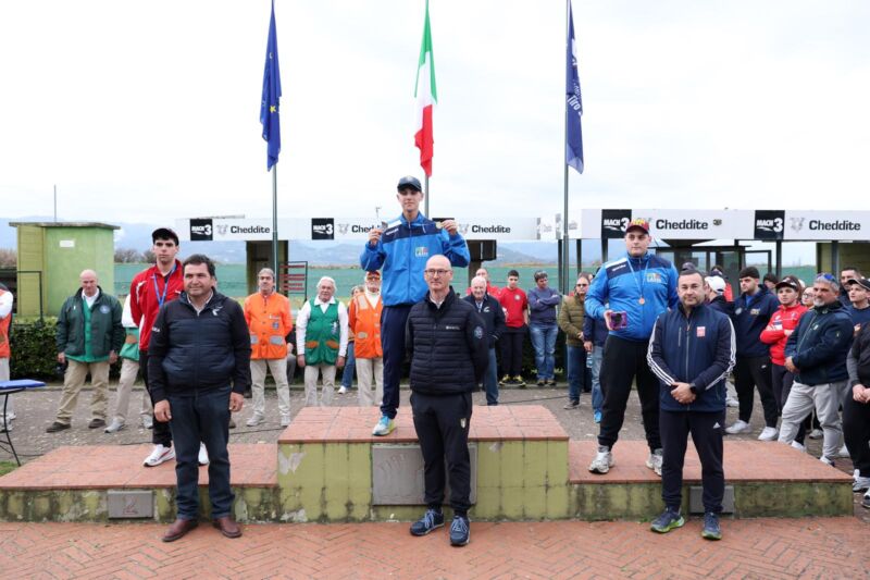Per l’edizione 2026 della grande festa di colori del Campionato d’Inverno di Fossa Olimpica e Skeet del Settore Giovanile è stato il Tav Montecatini Pieve a Nievole (PT) a svolgere il ruolo di palcoscenico privilegiato per i 246 giovani specialisti (202 per il Trap e 44 per lo Skeet) provenienti da 14 Regioni che si sono dati appuntamento sulle pedane toscane oggi, domenica 1° marzo, per eleggere i Campioni Under 21 della stagione fredda. Una kermesse che ha restituito uno dei panorami più belli del calendario federale giovanile, evidenziando l’entusiasmo, l’energia e la passione dei più giovani tra gli agonisti della disciplina sportiva del piattello. Passando ai risultati, per la specialità regina al termine delle due serie previste dal programma di gara, il Titolo di Campione d’Inverno Juniores maschile è stato conquistato da Andrea Diana (Fiamme Oro) di Frosinone con il punteggio pieno di 50/50. Ad un solo piattello di distanza il secondo classificato Andrea Guidi di Casnigo (BG) d’argento con 49/50, sul terzo gradino del podio si è accomodato il bronzo Cristian Zonetti (Fiamme Oro) di Fara in Sabina (RI) con 47/50. Nel comparto Juniores femminile ad appuntarsi sul petto lo scudetto è stata Lisa Taccola di Pisa con 43/50, seguita sul podio da Beatrice Zainotto di Spinea (VE), in piazza d’onore con 42/50+1 e da Giada Scalvini di Chiari (BS), medaglia di bronzo con 42/50+0.