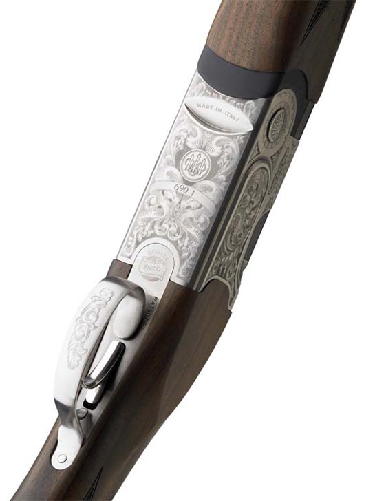 La bascula snella ed elegante, in acciaio, vanta un’elegante e raffinata incisione floreale di tipo rinascimentale e la doppia poppetta, derivata dai fucili di lusso Beretta, come il 687 EELL. Qui è posto il monogrillo selettivo che agisce su batterie interne tipo Anson. La chiusura è quella classica della serie 680/690 con i due perni conici per il recupero costante del gioco e un serraggio sempre perfetto. Le canne, assemblate in Monobloc, sono in acciaio trilegato Steelium Optimabore HP con foratura profonda, martellatura a freddo e distensione sottovuoto, caratteristiche che contribuiscono al ridotto rinculo e minimo impennamento, oltre ad assicurare eccellenti rosate con ottima penetrazione sul bersaglio. Tutte le canne hanno strozzatori interni di ultima generazione OptimaChoke HP, perfetti per i pallini sia di piombo sia d’acciaio. Le canne sono sormontate da un’elegante bindella 6×6 ventilata a base solida, mentre i bindellini fra le due canne sono pieni, come si addice ad un fucile da caccia.