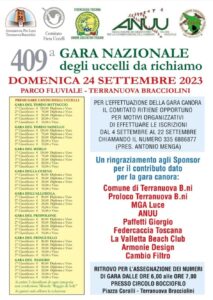 Questa domenica Terranuova Bracciolini, in occasione della tradizionale festa del Perdono, la Proloco locale e il Comitato Fiera Uccelli in collaborazione con FATFO, ANUU Migratoristi Toscana e FIDC UCT – Federcaccia Toscana Unione Cacciatori Toscani, organizzano la 409° gara canora degli uccelli da richiamo.