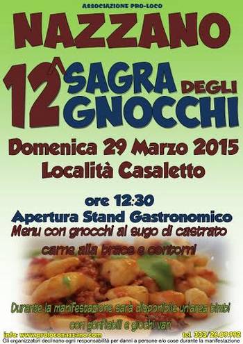 12a Sagra degli Gnocchi di Casaletto - Nazzano (RM)Torna per la dodicesima edizione la Sagra degli Gnocchi di Casaletto – Nazzano, in provincia di Roma, nella giornata di domenica 29 marzo 2015